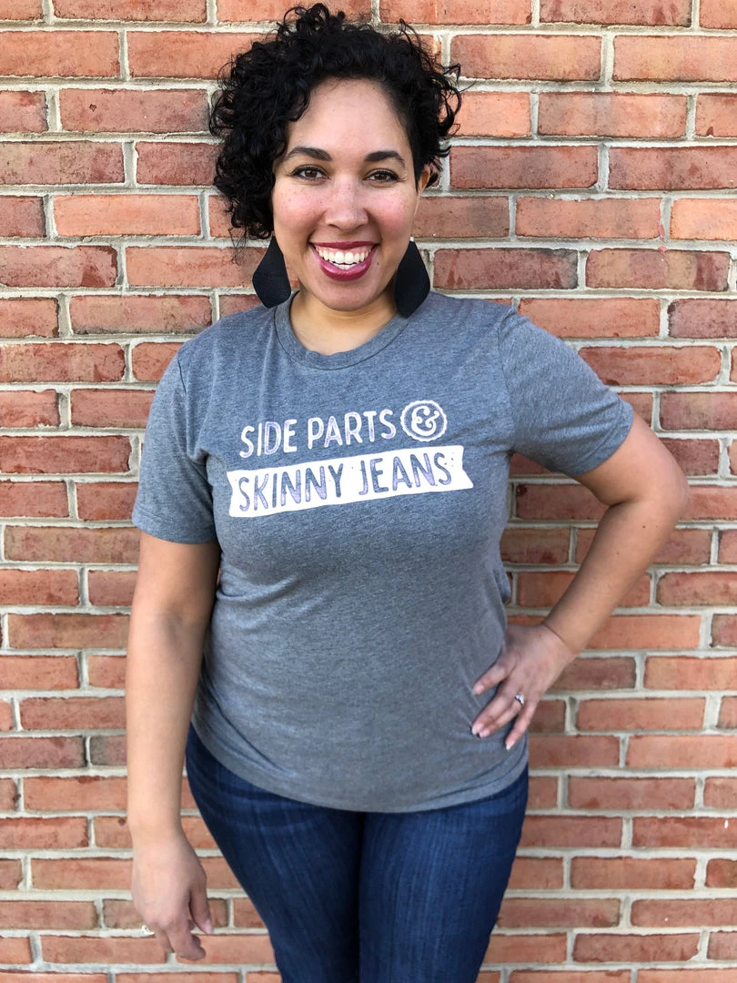 This super soft and fun top pokes fun at the meme about side parts and skinny jeans not being cool anymore! Rock those side parts and skinny jeans and flaunt it loud and proud in this tee!