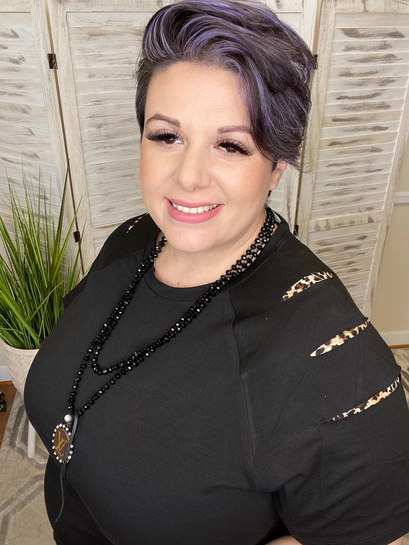 This gorgeous top is so soft and features slashes on the sleeves revealing leopard print underneath. This sassy top will spice up any outfit you pair it with!