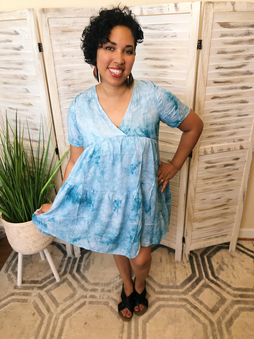 This beautiful tie dye dress features a flowy tiered look that is so effortlessly chic, you will love wearing it every day. Pair this lightweight dress with your favorite shoes and accessories for a day to night look that will be so fun.Β