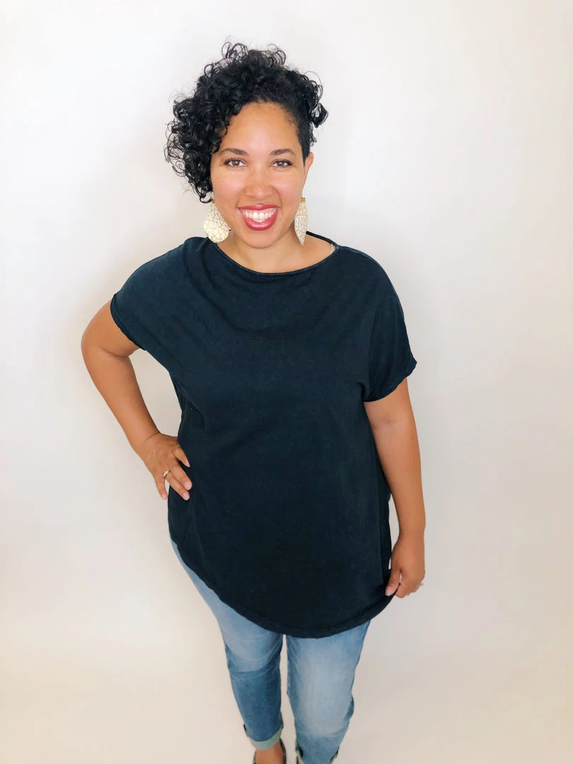 This gorgeous mineral washed top features short sleeves and a poncho fit. This lightweight top can easily be paired with leggings, shorts or your favorite jeans for a quick, comfortable outfit.