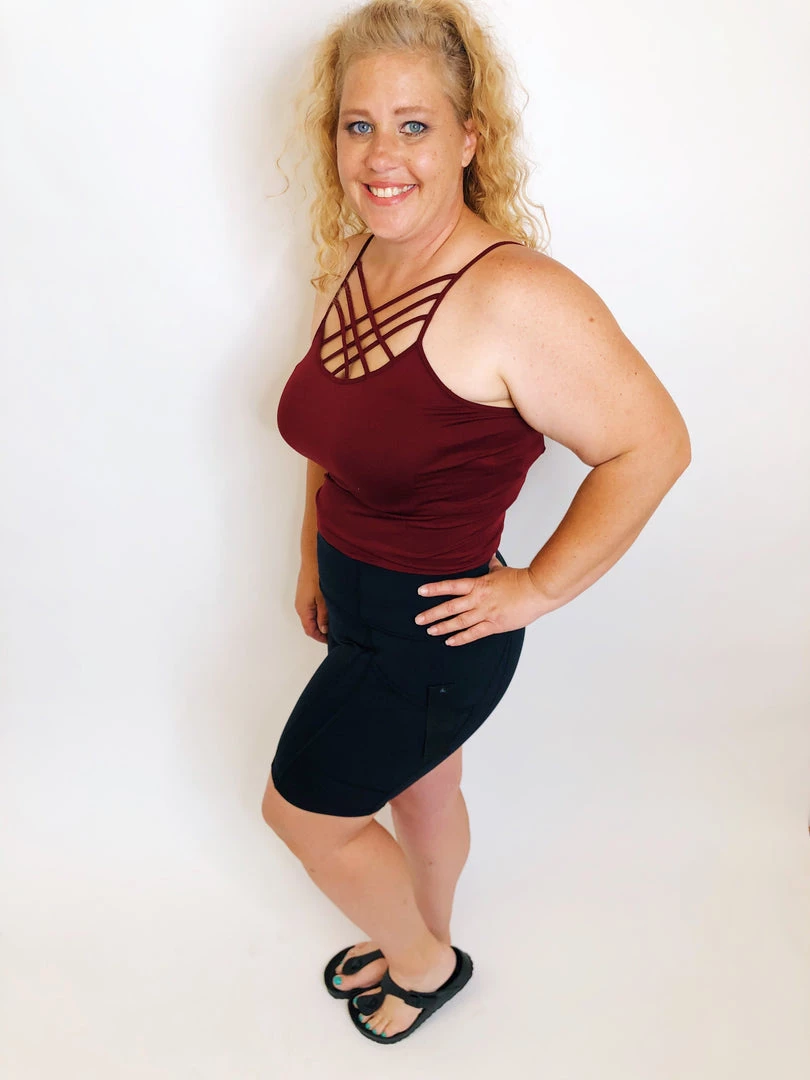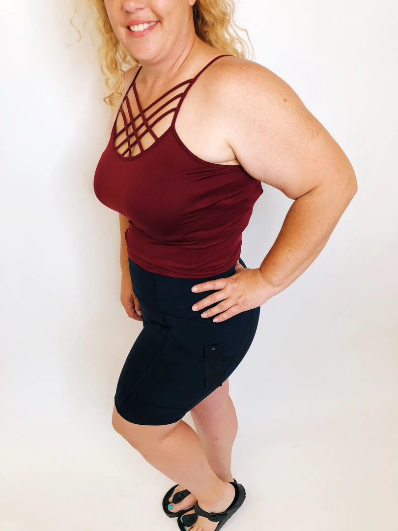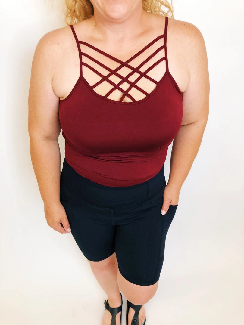 This amazing tank with it’s criss cross design is the perfect tank! You wear this as is or layer it under a shirt or cover up! You don’t want to miss out on this incredibly versatile and soft tank top.