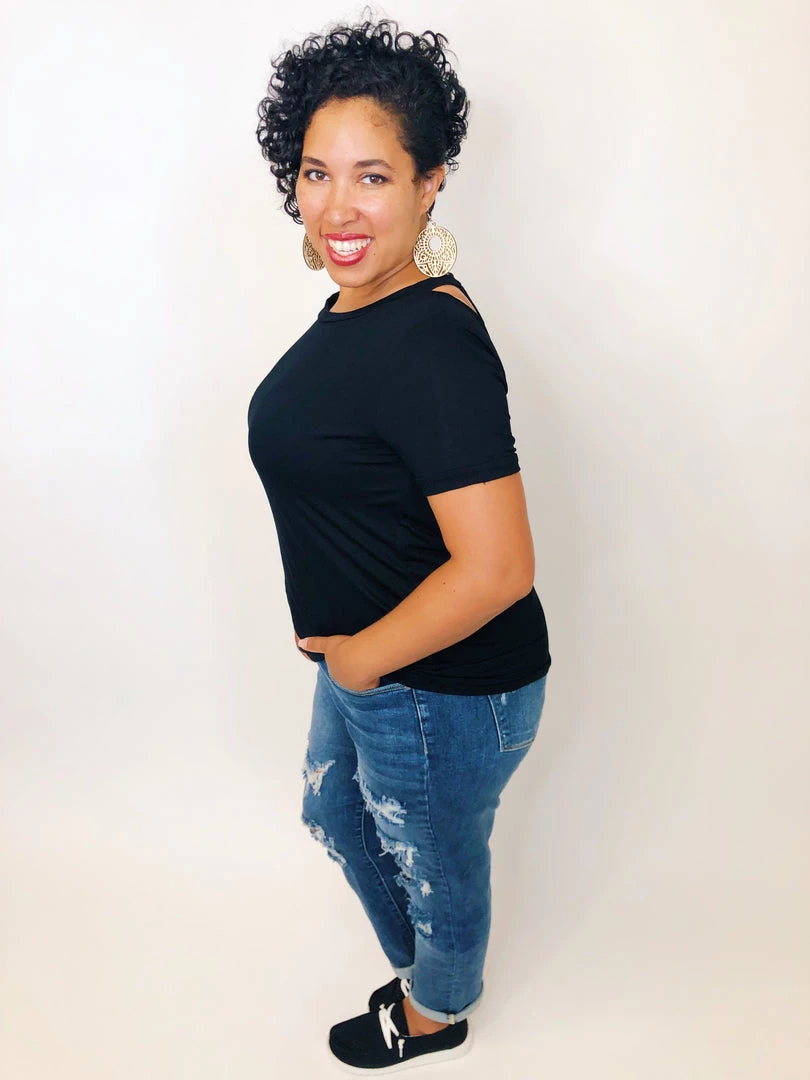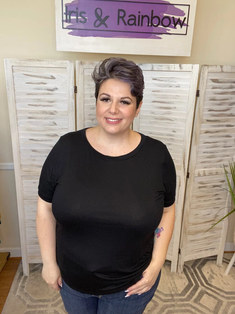 This top runs true to size. Iris is a true 18W/2XL and she wears a 2XL in this top.
