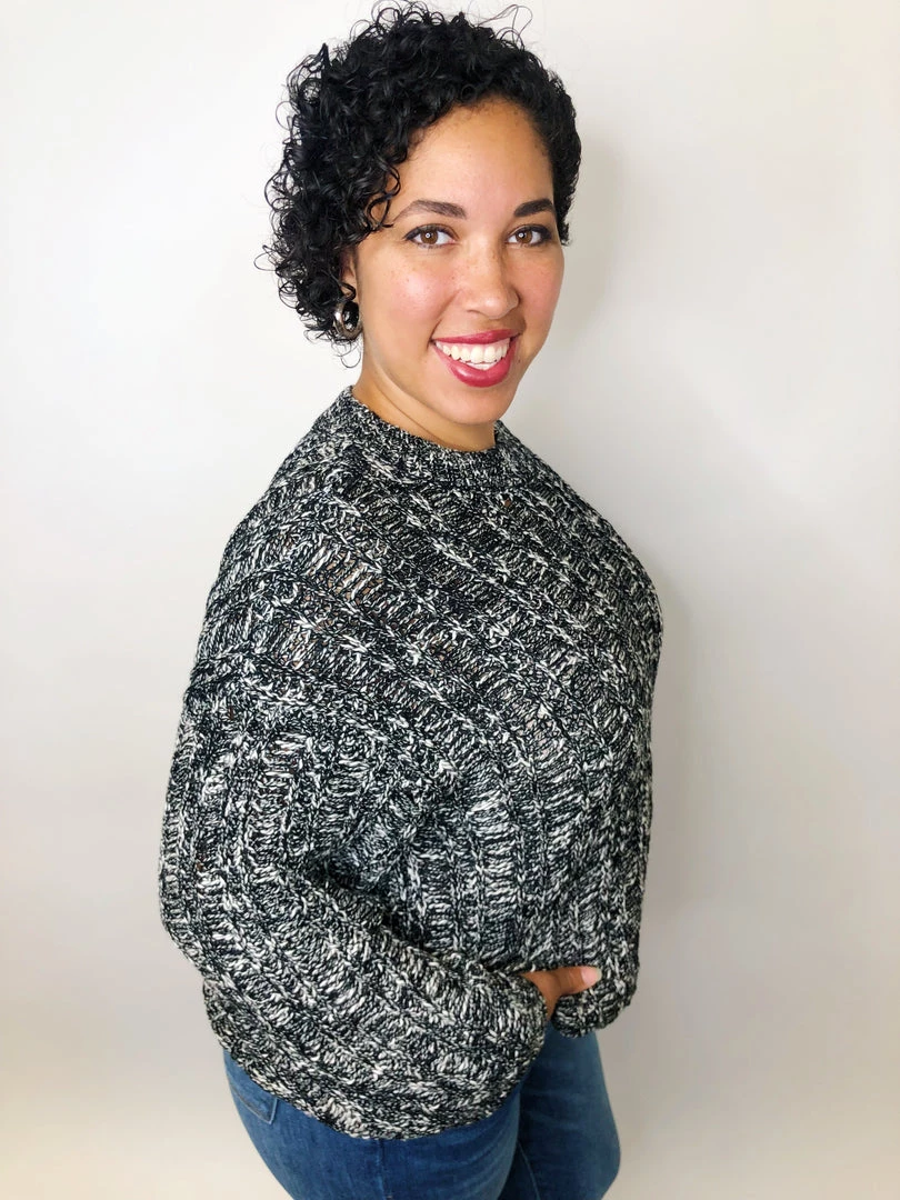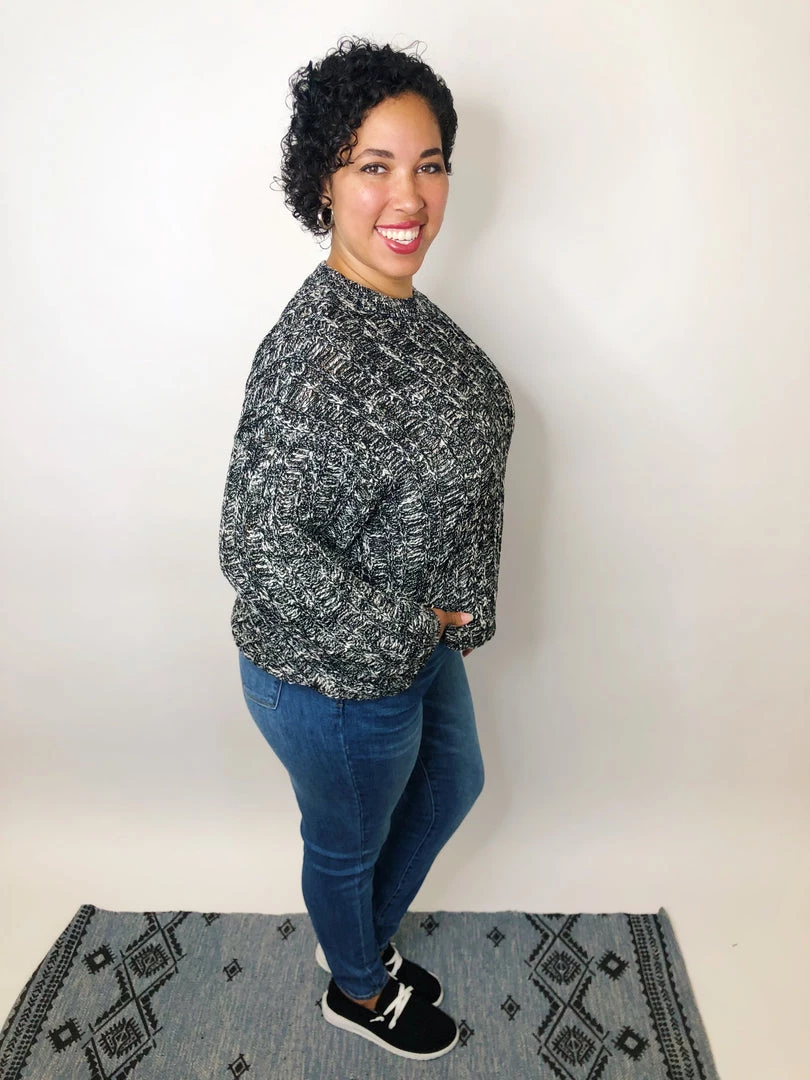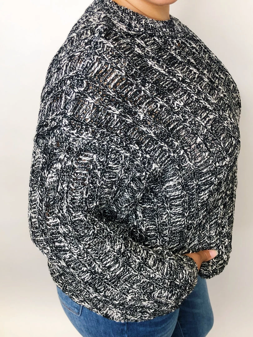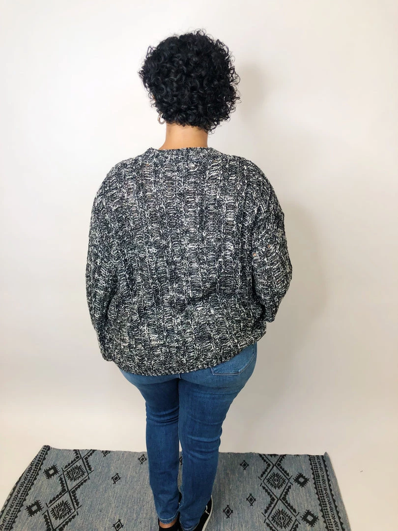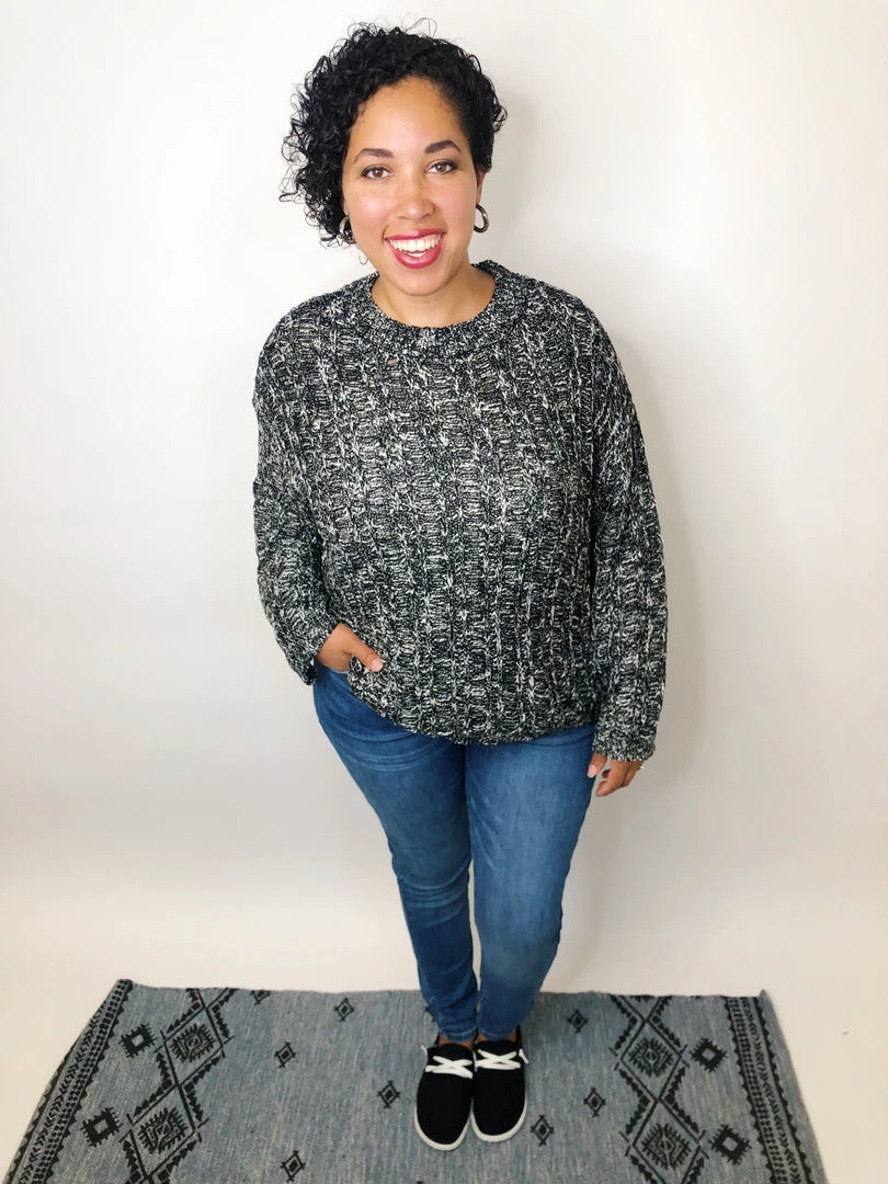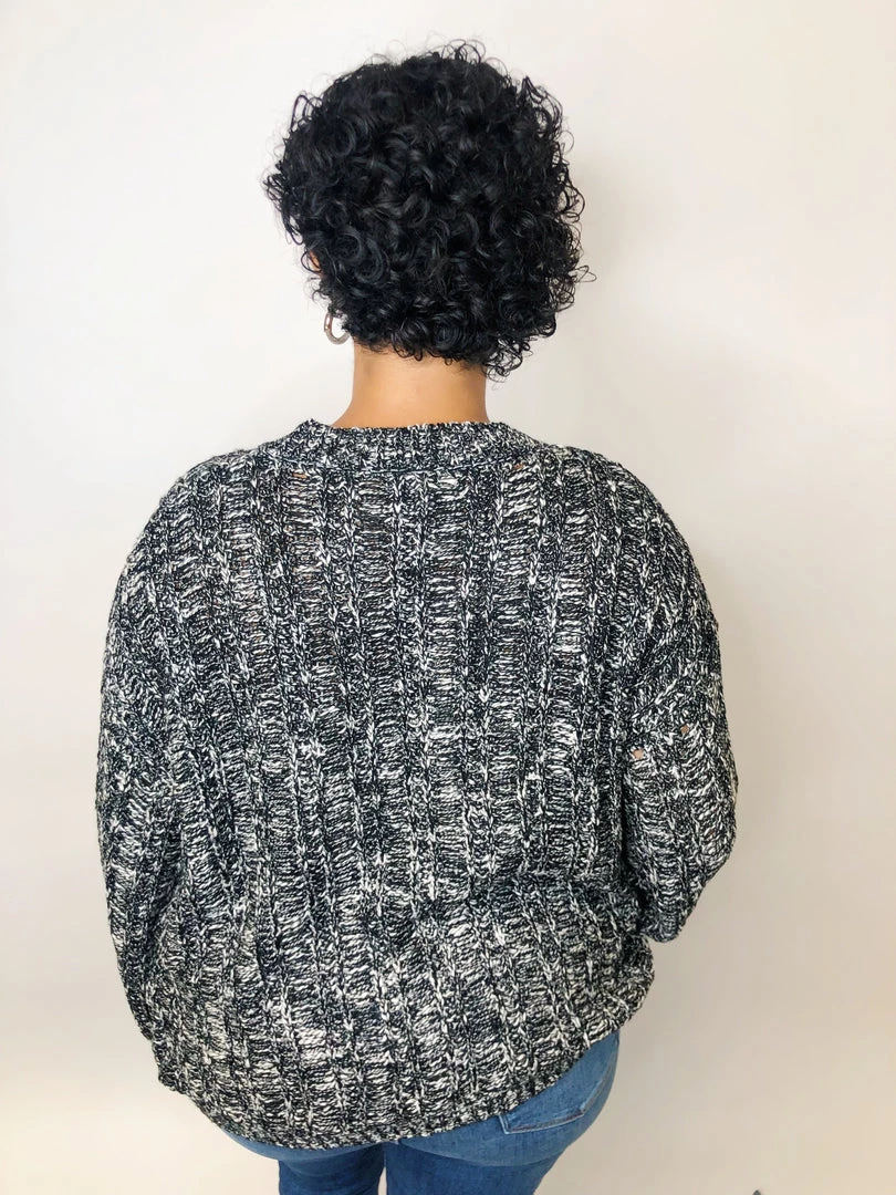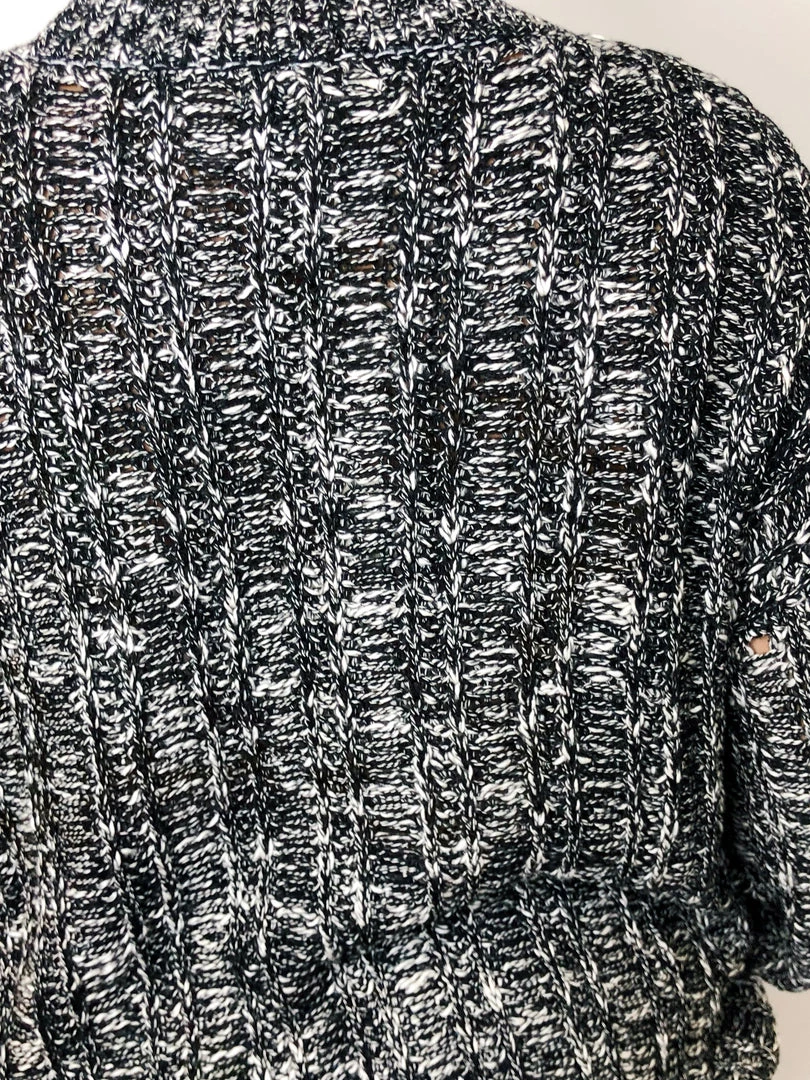 This is a really cute and comfy knit sweater. The black and white colors just make it easy to combine with any outfit. Pair this sweater with leggings or your favorite pair of jeans and you will be ready to enjoy the morning/night breeze.