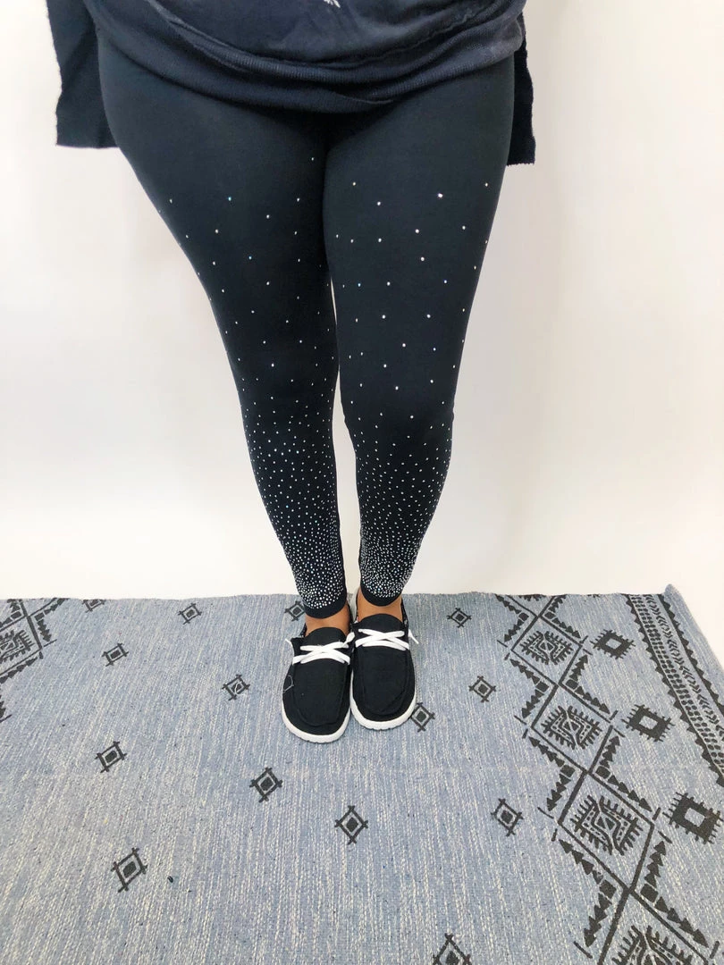 This is a really soft legging. There’s rhinestones from the bottom all the way up that makes this leggings so different and really cute. These have amazing stretch and run true to size. 2XL = 18/20WΒ