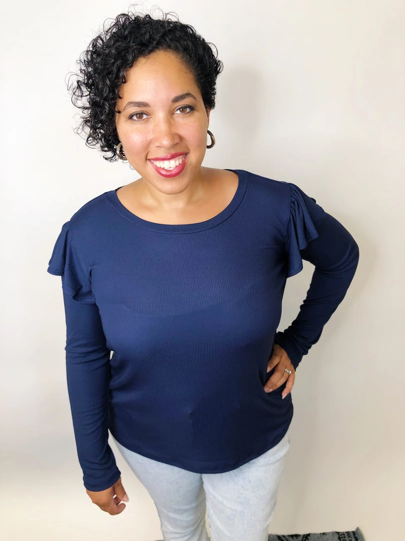 This top runs true to size. Iris is a true 18W/2XL and wears a 2XL in this top.