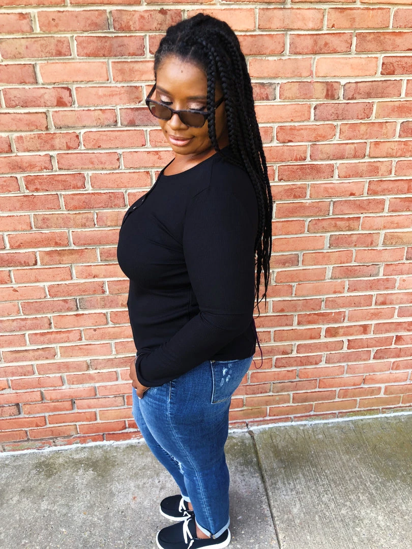 This beautiful long sleeve top, will be of great use during the fall, as you can use to help with the layers as it gets closer to winter. It has 5 buttons so you can unbutton or button according to your style. It has a rounded Ham to give some styling to it.