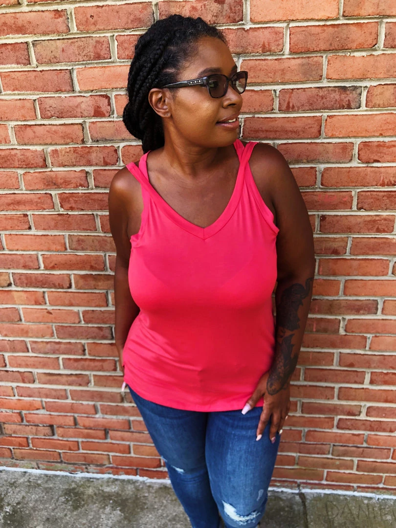 This gorgeous brightly colored tank top is SO soft and features a criss cross strap on the shoulder to add a unique edge to this top. This top features a v-neck and two small slits on the sides to ensure this top molds to compliments your body just right.Β