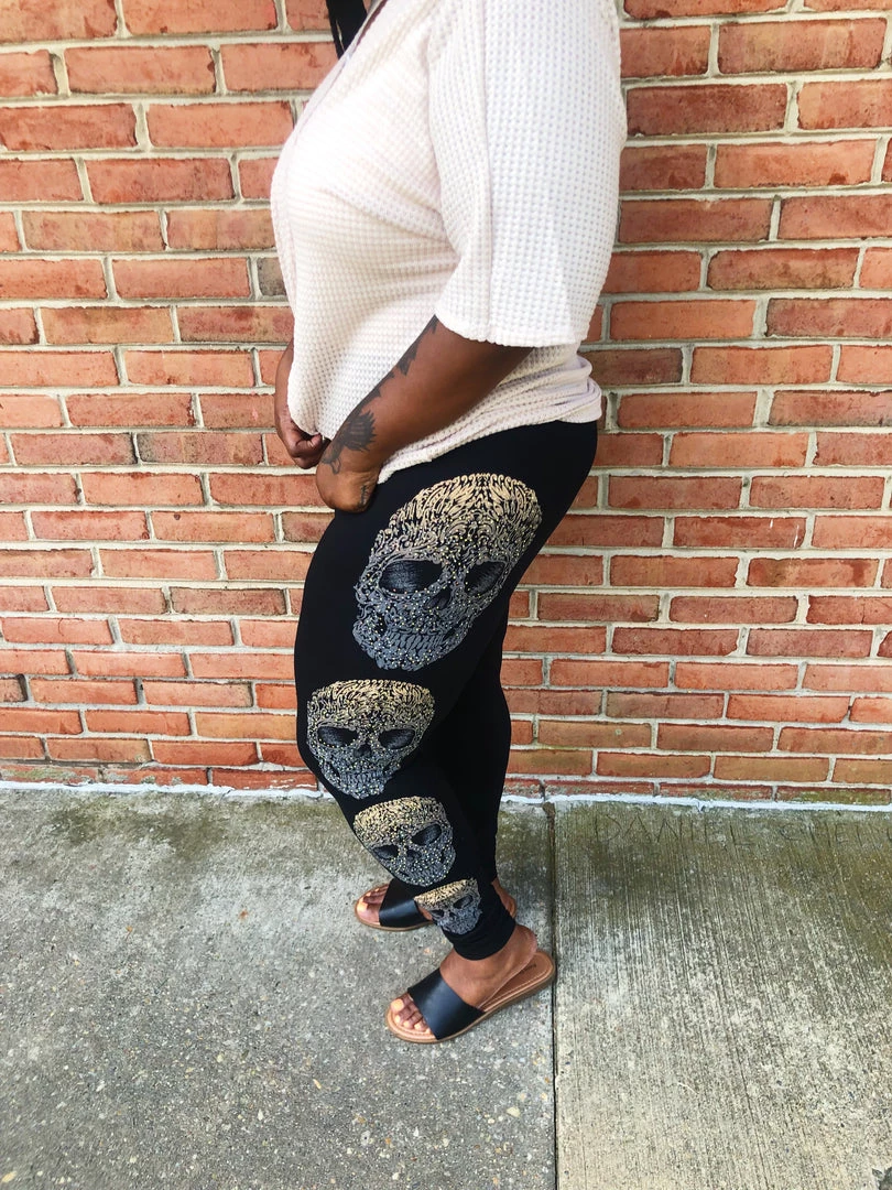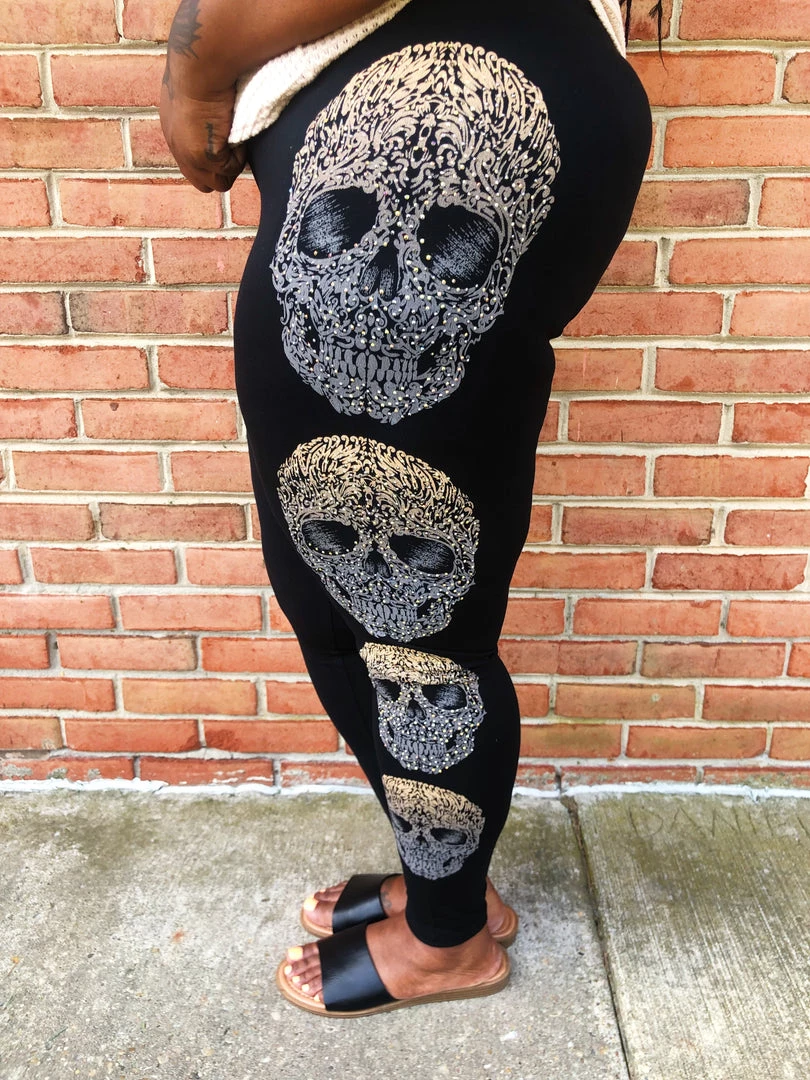 This beautiful leggings will be the crazy hit just in time for Halloween parties. These leggings have the skulls using some rhinestones to make its shape. Giving that extra beauty touch.Β