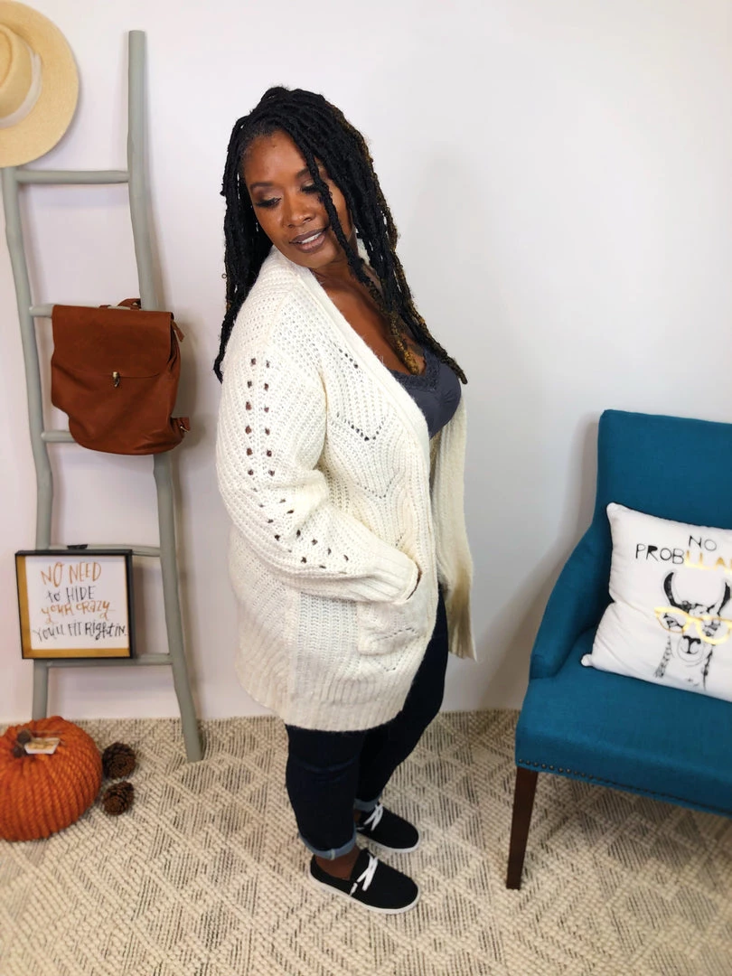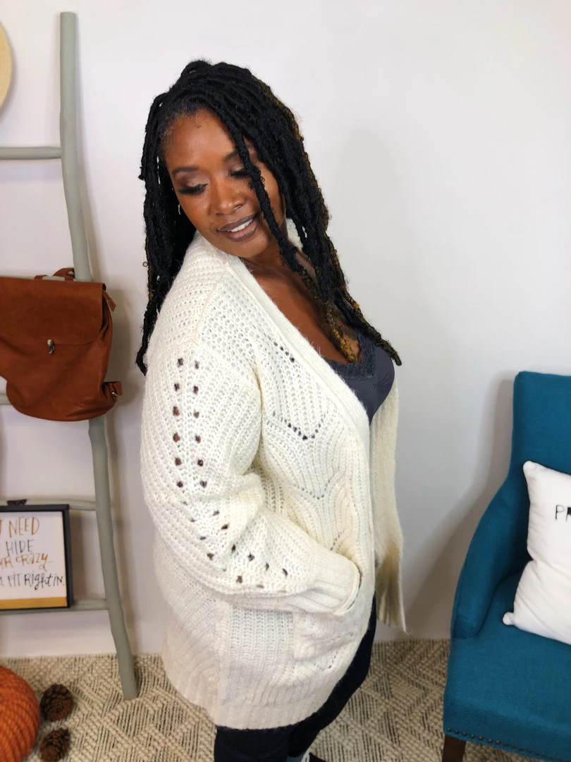 Gorgeous and oh so soft- POL does it again with this open front cardigan! It has billowing sleeves, ribbed detailing and POCKETS! Who doesn’t love great pockets! This cardigan will feel like you are being wrapped in a blanket all day long. Snag this gorgeous piece by POL before it’s too late!
