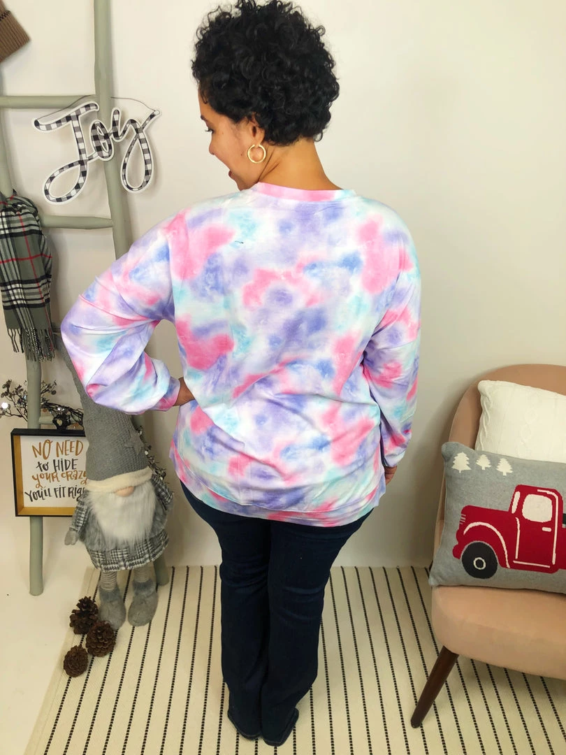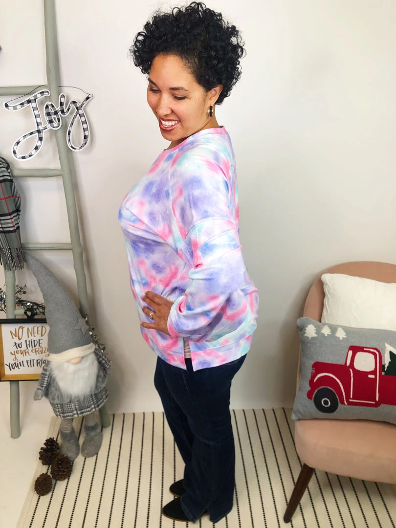 This beautifully colored tie dye pullover is a mix of berry splash colors that are so vibrant and gorgeous! The loose fit and crew neck-line gives you the best and most comfortable fit, while the rest keeps you warm and cozy. This amazing pullover can used to lounge in or for a day out! You will love how effortlessly cute this top is!