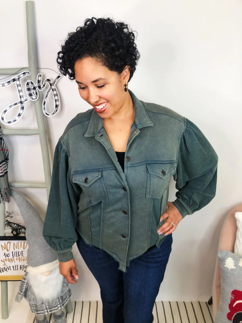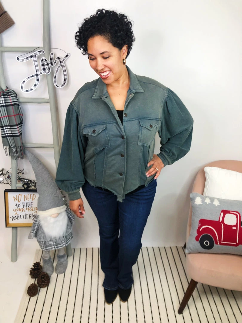This gorgeousΒ shacket is soΒ beautifulΒ and comfy! It features side pockets and raw hem details with cute bottoms, and the beautifulΒ vintage moss color is just stunning and perfect for your fall/winter outfits!! This amazing shacket has a different texture on the sleeves and under the bottoms, making even more stylish and gorgeous. You can pair them with leggings or your favorite jeans, and you will have a reallyΒ beautifulΒ look!