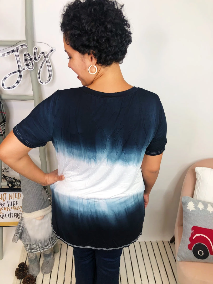 This amazing tie dye POL top is just gorgeous!! It has a crew neck andΒ features a gorgeous horizontal tie dye print, mixing black and ivory. This top is so comfortable and the material is so soft!! The back of the top is longer, which makes this top even more stylish, and you can match them with your favorite jeans or leggings. You will love this top!
