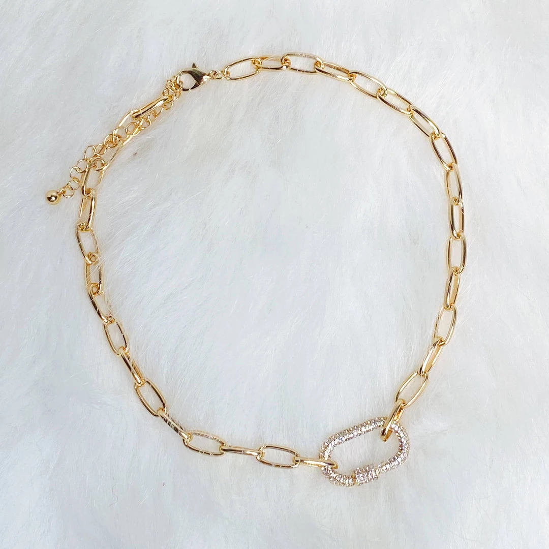 Linked chain detailed with a sparkly cubic zirconia larger link.