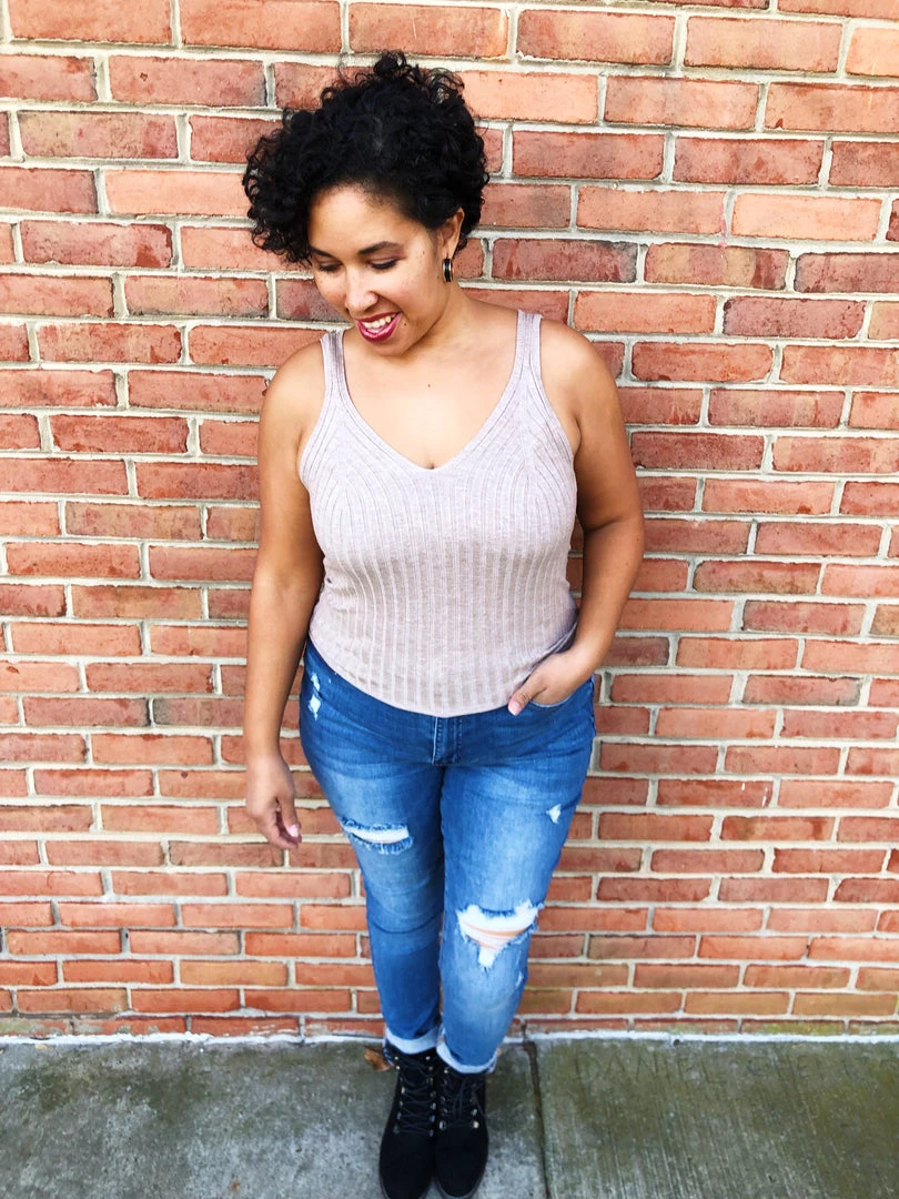 This very comfortable tank top will be your go to for hangouts and relaxing times with friends at the restaurant or parties. Comes with some groves in a oatmeal color giving an excellentΒ look. The groves adds some stretch to the top making very comfortable.