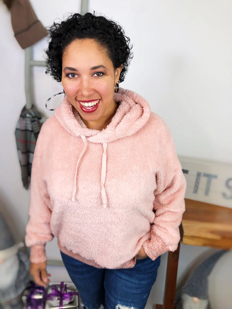 This hoodie is everything you need to have!!!Β I’m not kidding this is SO soft!!! It has a baby pink color featuring long sleeves, contrast rib details and drawstrings! And the material in this, OMG! It’s so fluffy and lightweight! This is gonna be for sure your favorite hoodie!Β