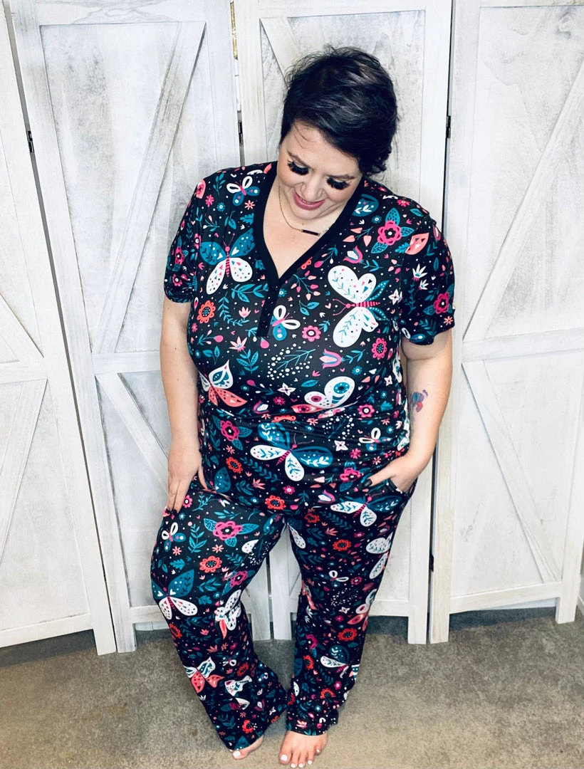 These daily wear pajamas are SO beautiful!!! It features a v-neckline with four small buttons!!! And the bottoms features pockets and a drawstring!!! It also has multiples butterflies and flowers printed on it!!! It’s just the most amazing pajamas ever! You’re gonna love it!Β