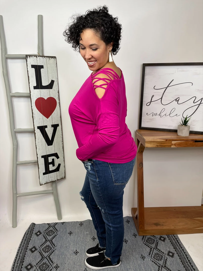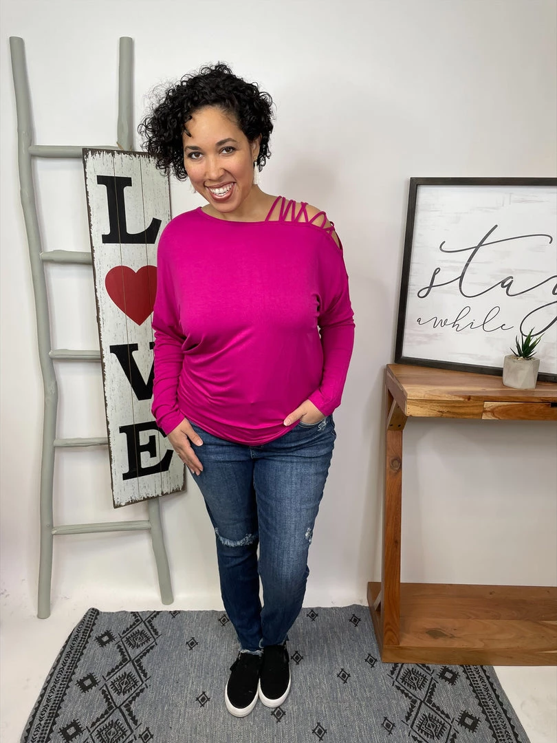 This top is freaking beautiful and sexy! It’s a long sleeve solid knit top with a boat neck featuring a lattice shoulder and a tapered waist! And the fabric is a lightweight rayon knit! This top is gonna make your outfit looks amazing, girl! You’re gonna love it!