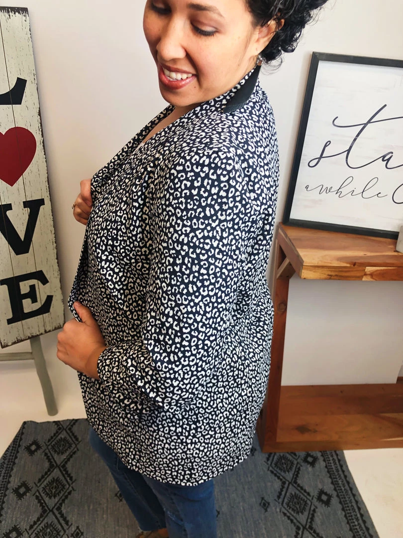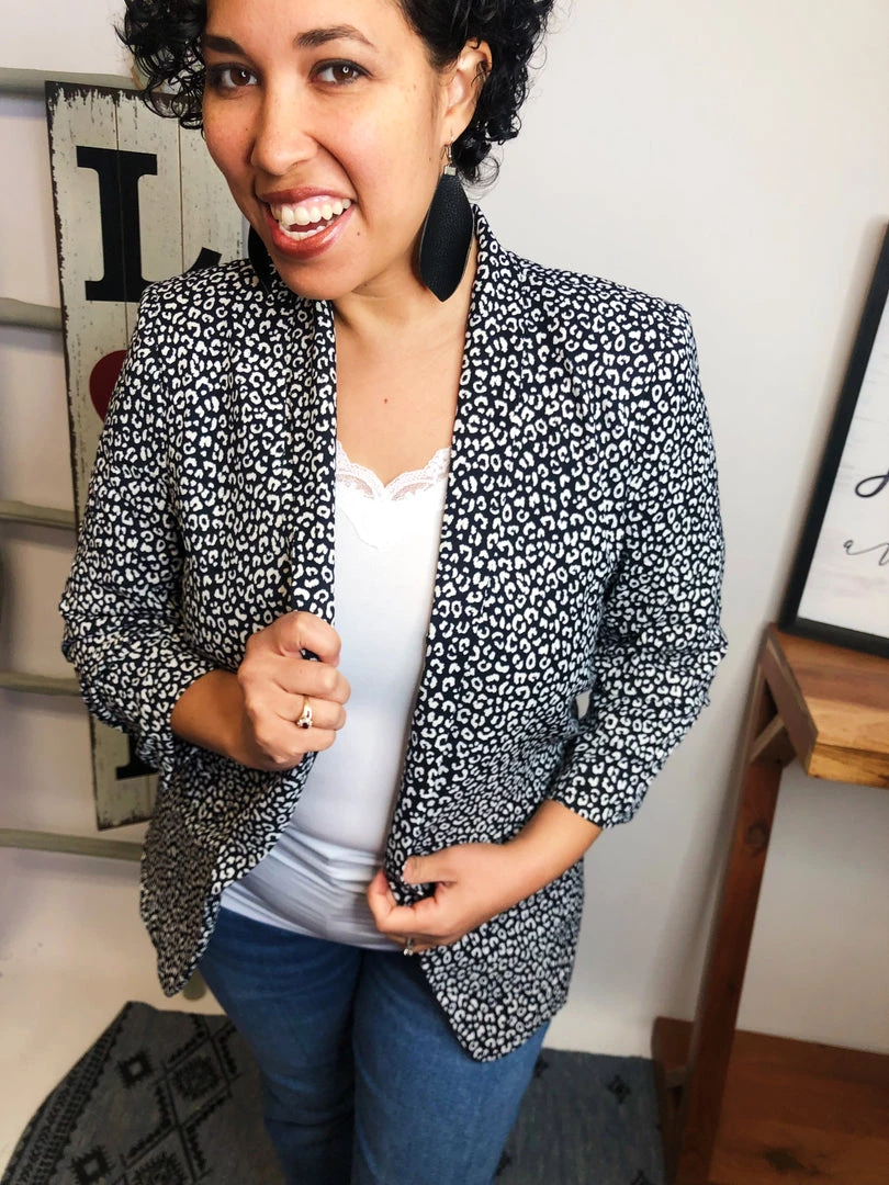 This blazer is GORGEOUS! It’s animal print collared blazer featuring ruched sleeves and open-front!!! That is the kind of piece that adds a lot of personality to any outfit! You’re gonna love it, girl!