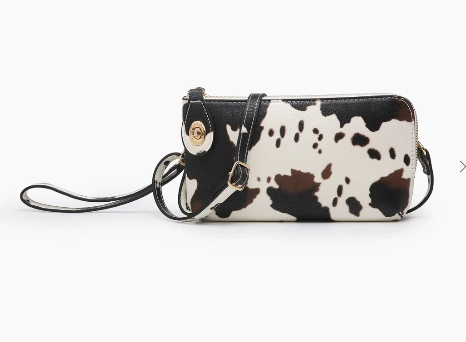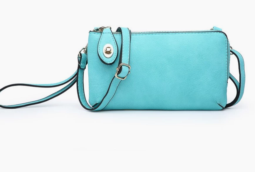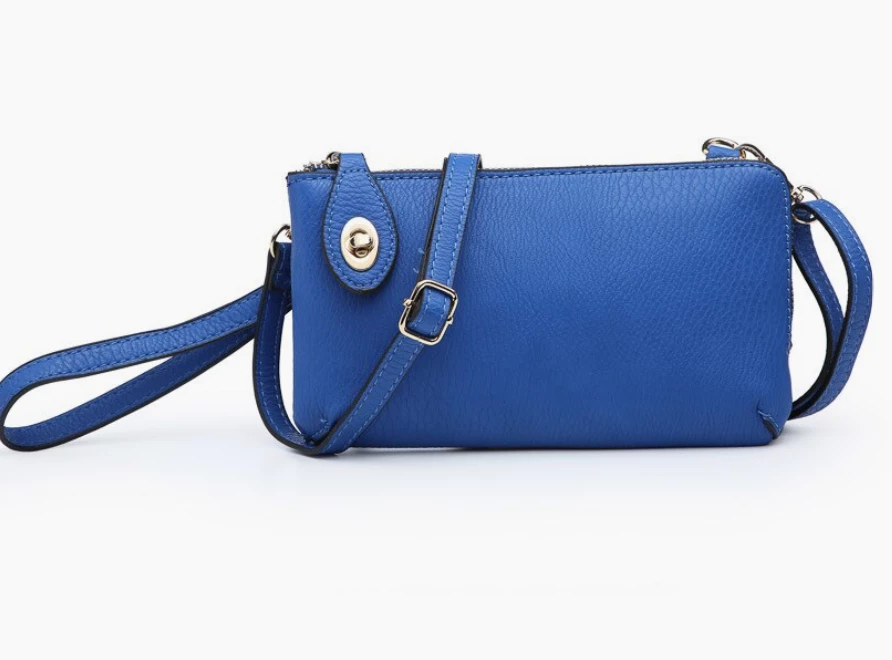 Monogrammable Main center zip compartment Twist lock closure Adjustable shoulder strap Inner cardholders Detachable wristlet strap Vegan leather