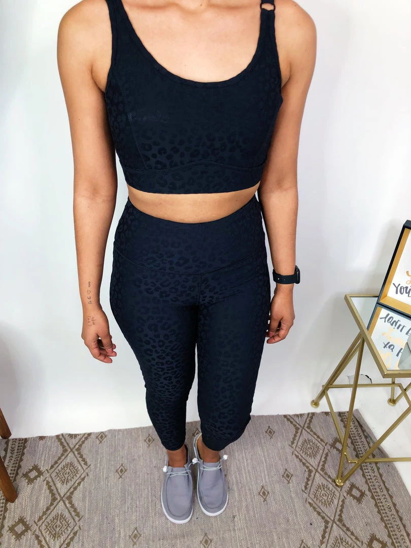 These solid-colored bralette are GORGEOUS! With adjustable bra straps and a half-circle cutout on the back, this Textured Leopard print (a Mono B exclusive fabric) sports bra straddles the line between cute and fierce. TACTEL is a soft, breathable, durable, supple, nylon 66 microfiber 20% lighter than most fabrics and dries eight times faster than cotton.