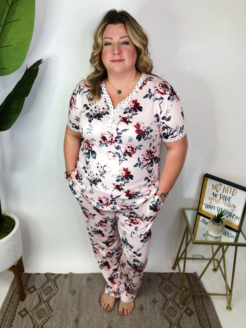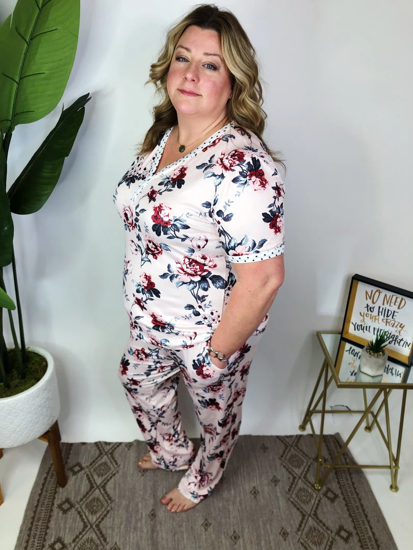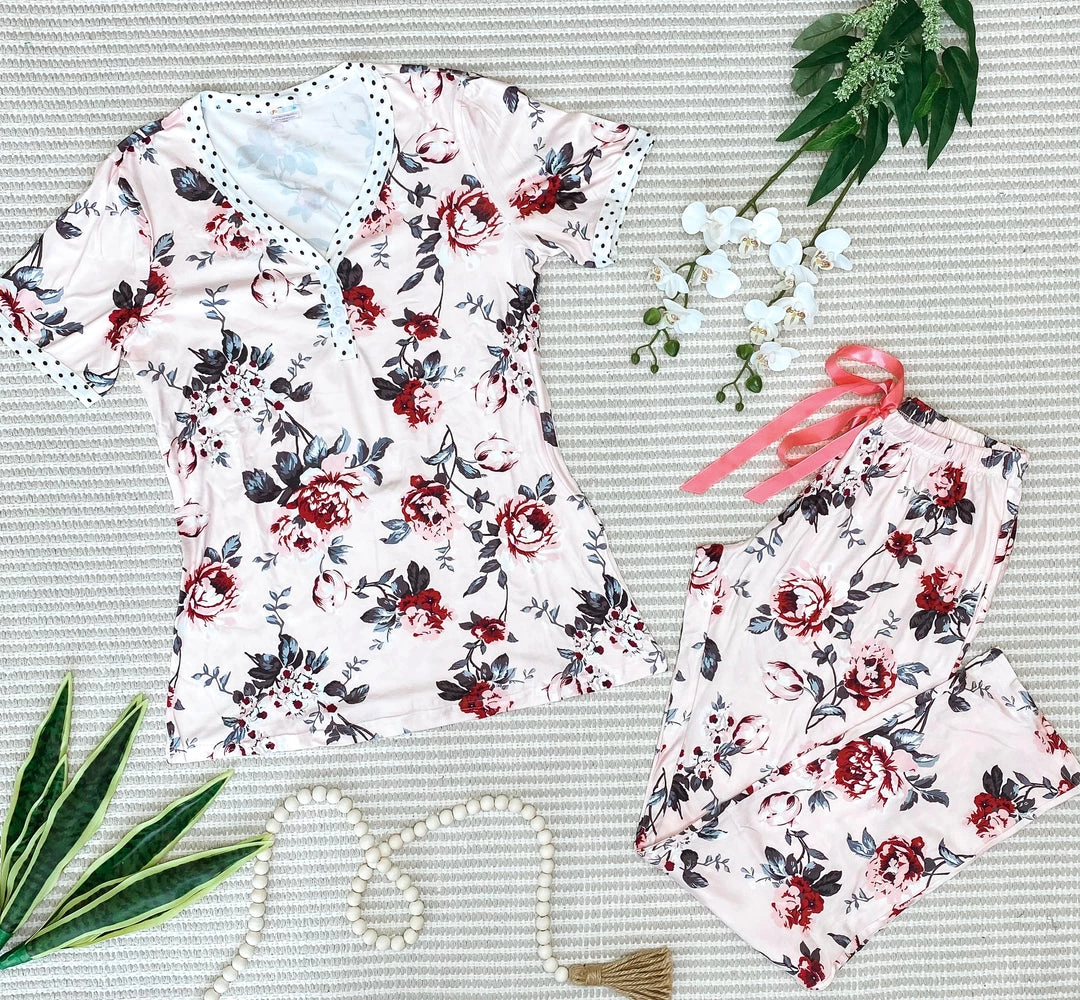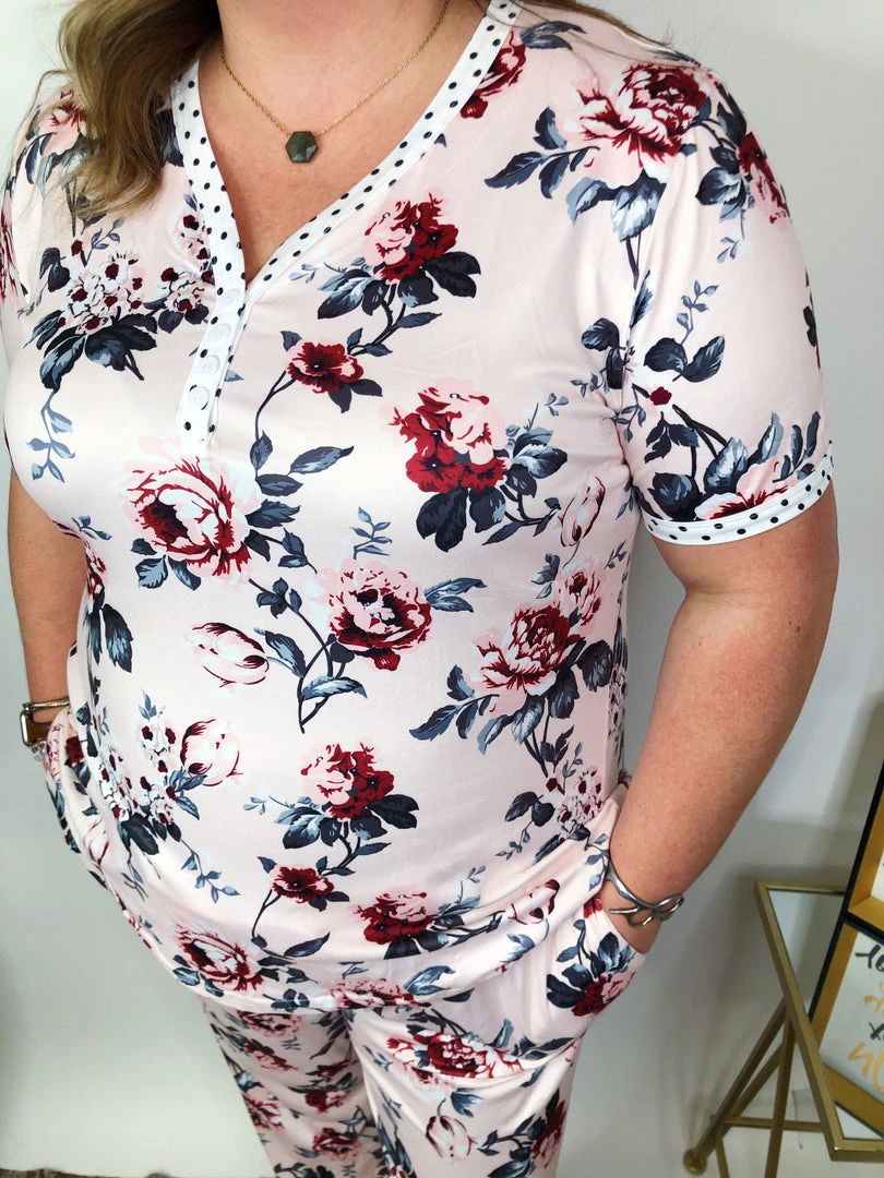These daily wear pajamas are SO beautiful!!! It features a v-neckline with four small buttons!!! And the bottoms features pockets and a drawstring!!! It also has multiplesΒ flower printed on it!!! It’s just the most amazing and suggestive pajamas ever! You’re gonna love it!Β
