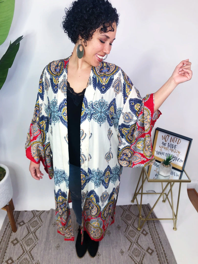 OMG! This kimono is so beautiful!!! It’s open front featuring a gorgeous pattern printed on it!!! This piece is gonna give your outfit the glow it was missing! And the material in this kimono is really soft and lightweight! You’re gonna love it!!!