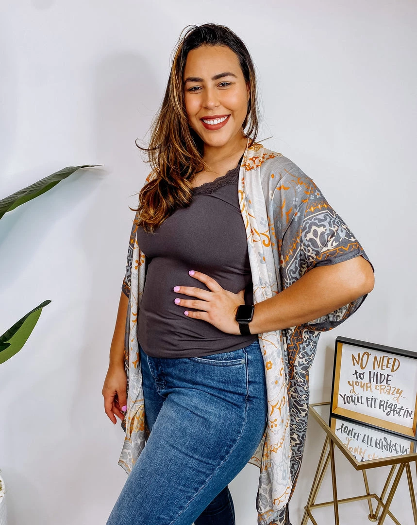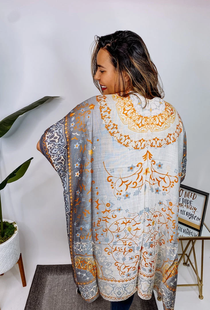 OMG! this stunning mandala motif with contrasting ombre effect and border kimono with side slits is perfect. This is different from anything you own, girl! And we are obsessed with it! Snag your before they’re all gone!