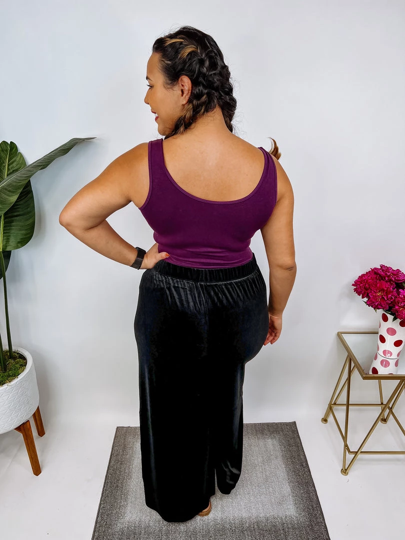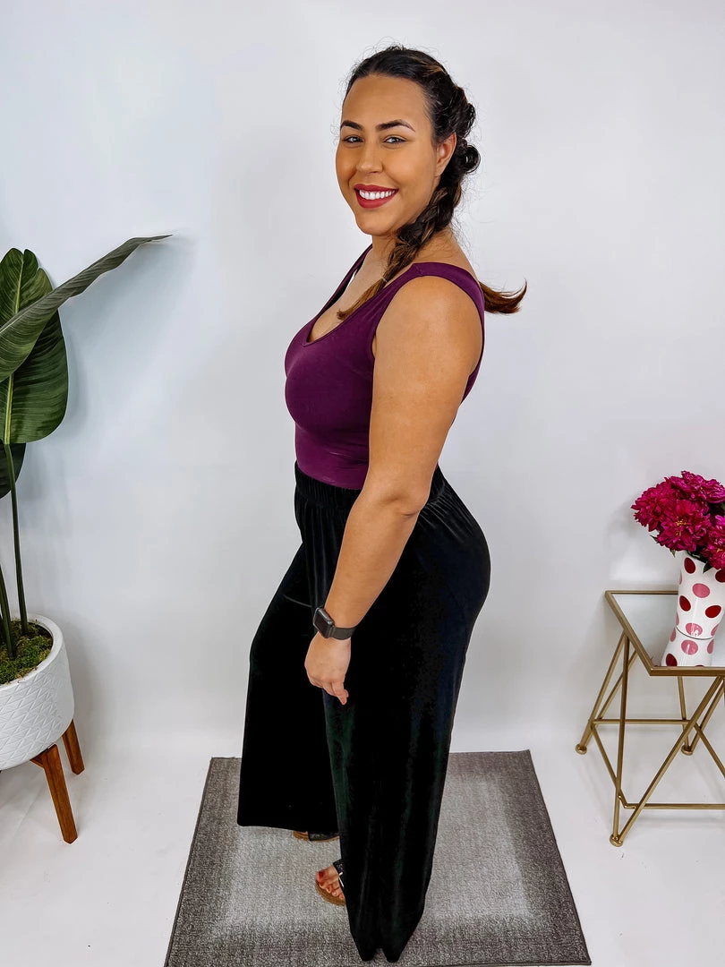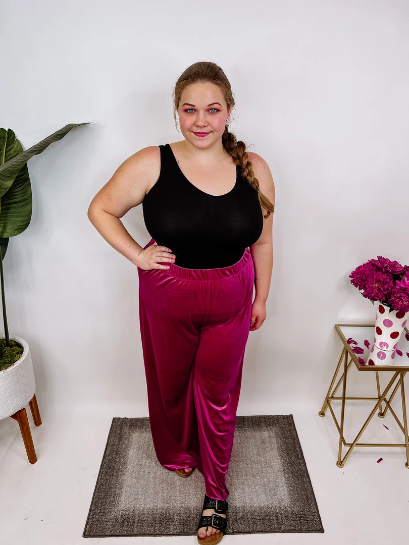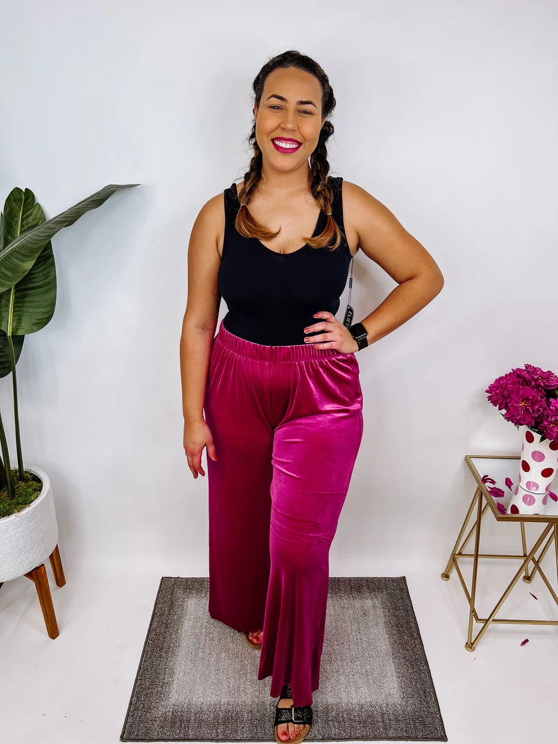 We’re just IN LOVE with these wide velvet pants! They have an elastic waist! The fabric on them is so soft and lightweight! These are that kind of pants that make all the difference in any outfit! You’re gonna love it!