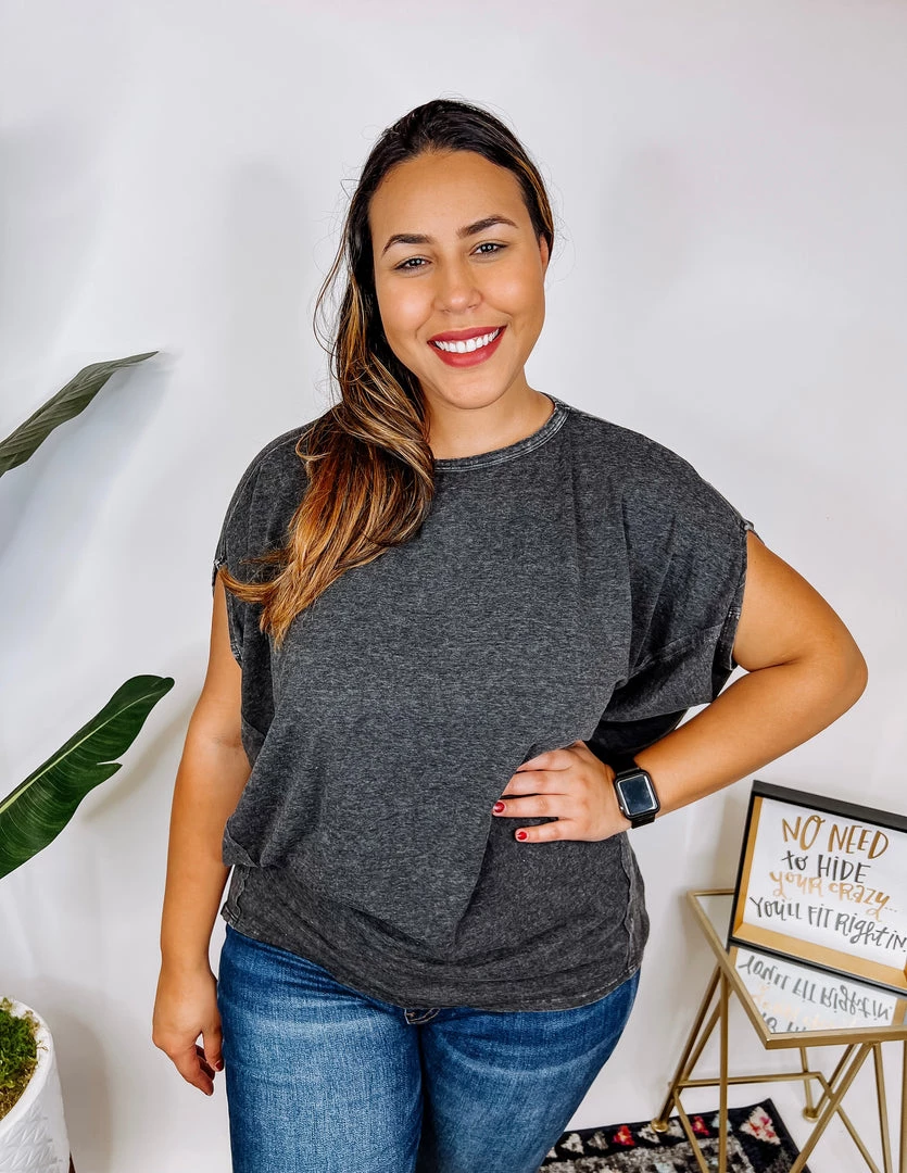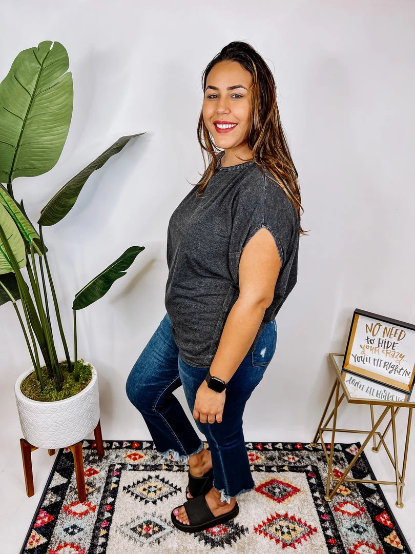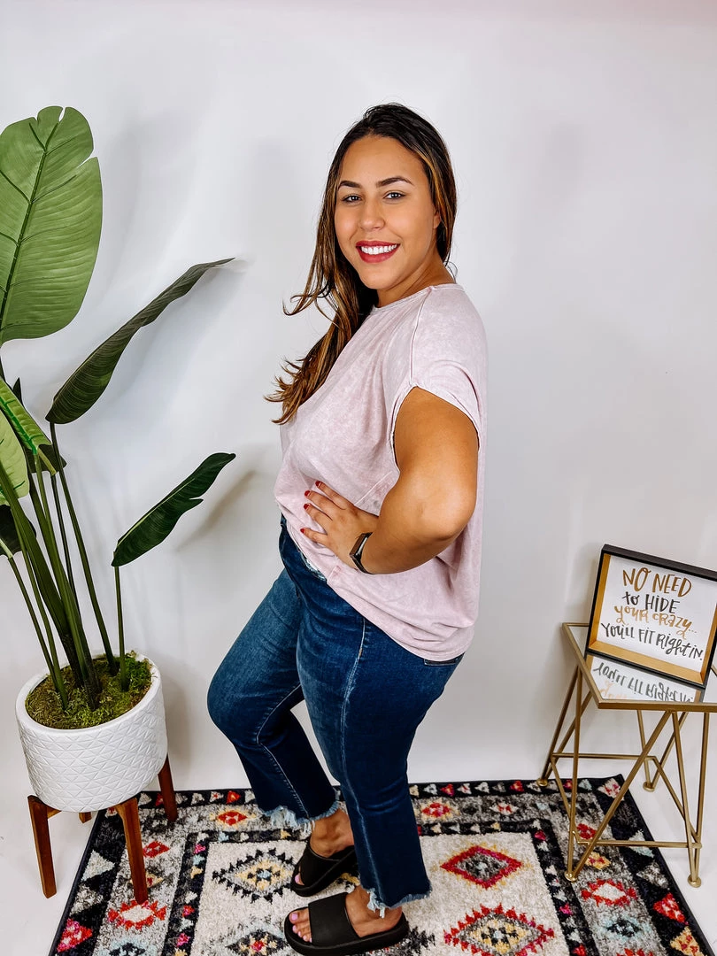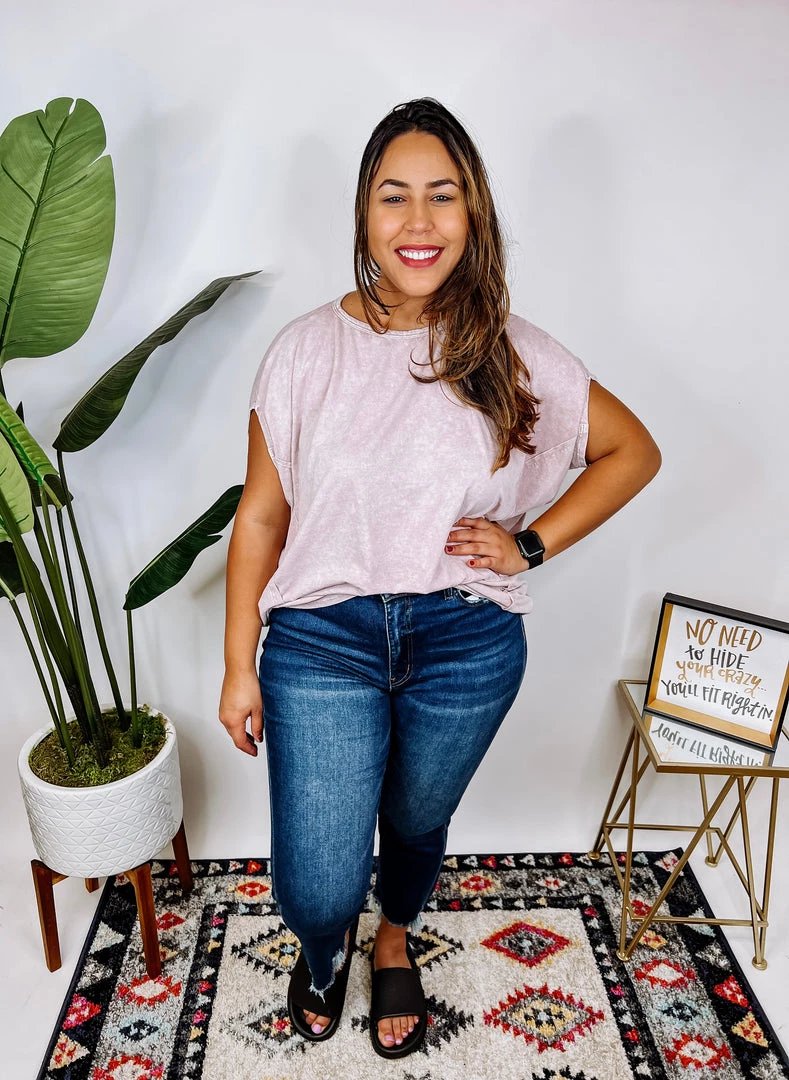 We are OBSESSED with thisΒ gorgeous top!! The material is so soft and the stretch is just amazing! It features a boat neckline and short sleeves. The mineral washed is so beautiful, and we have this top in two different color ways, blush and black. Snag your favorite and pair this top with your favorite jeans! You’re gonna love it!