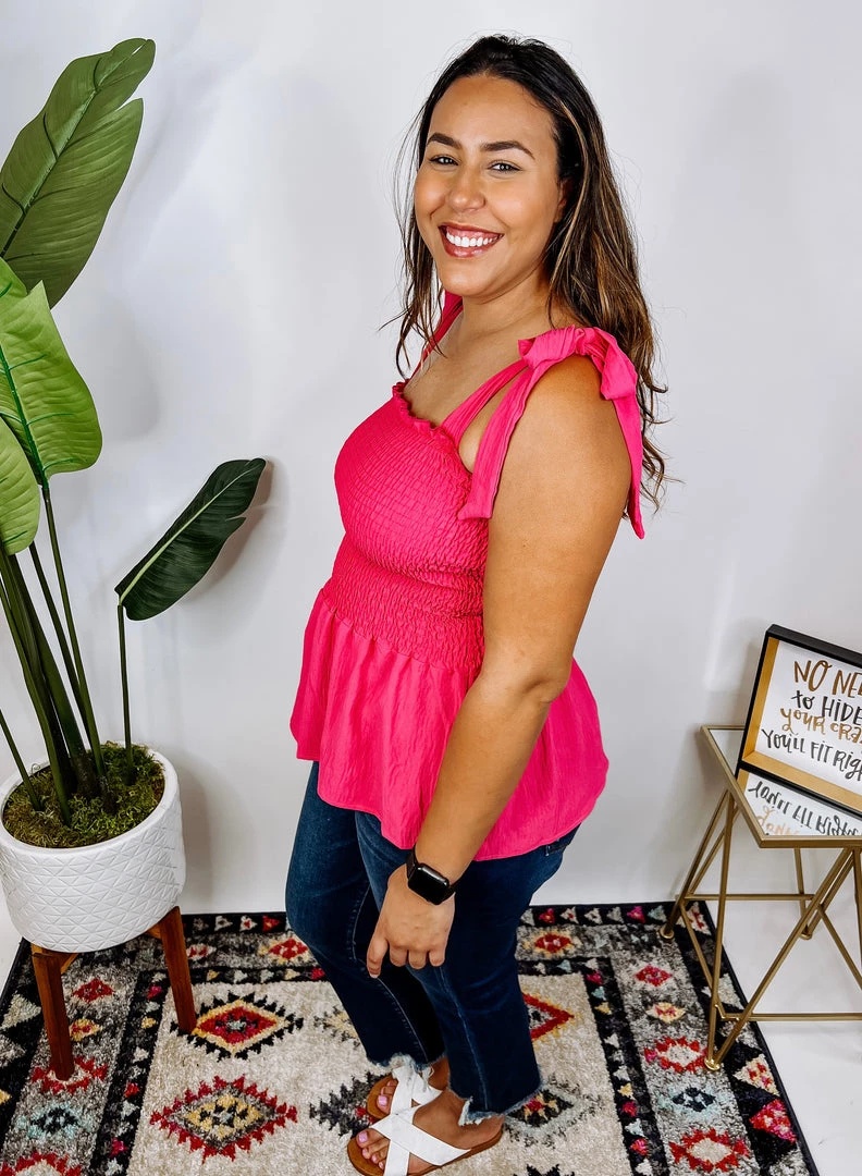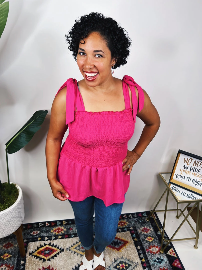 This Shoulder ties solid woven top featuring smocked bodice and adjustable with ruffled peplum hem is so beautiful! It’s a perfect option for those looking for a beautiful and stylish outfit! You’re gonna love it!