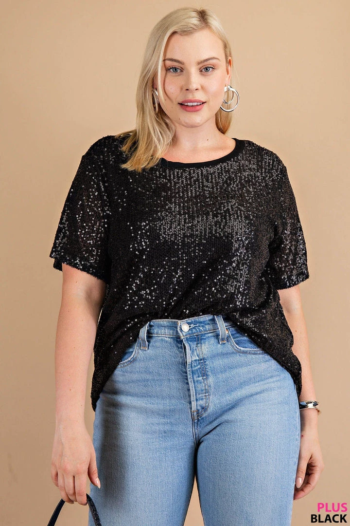 A classic that is loved by all!!! This top will bring out the DIVA in you!!! It features mini sequins and neck contrast!!! It is soft rayon lined and short sleeve!! Ladies, this piece is a MUST HAVE in your closet!!!