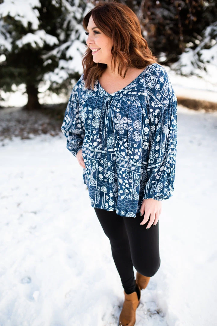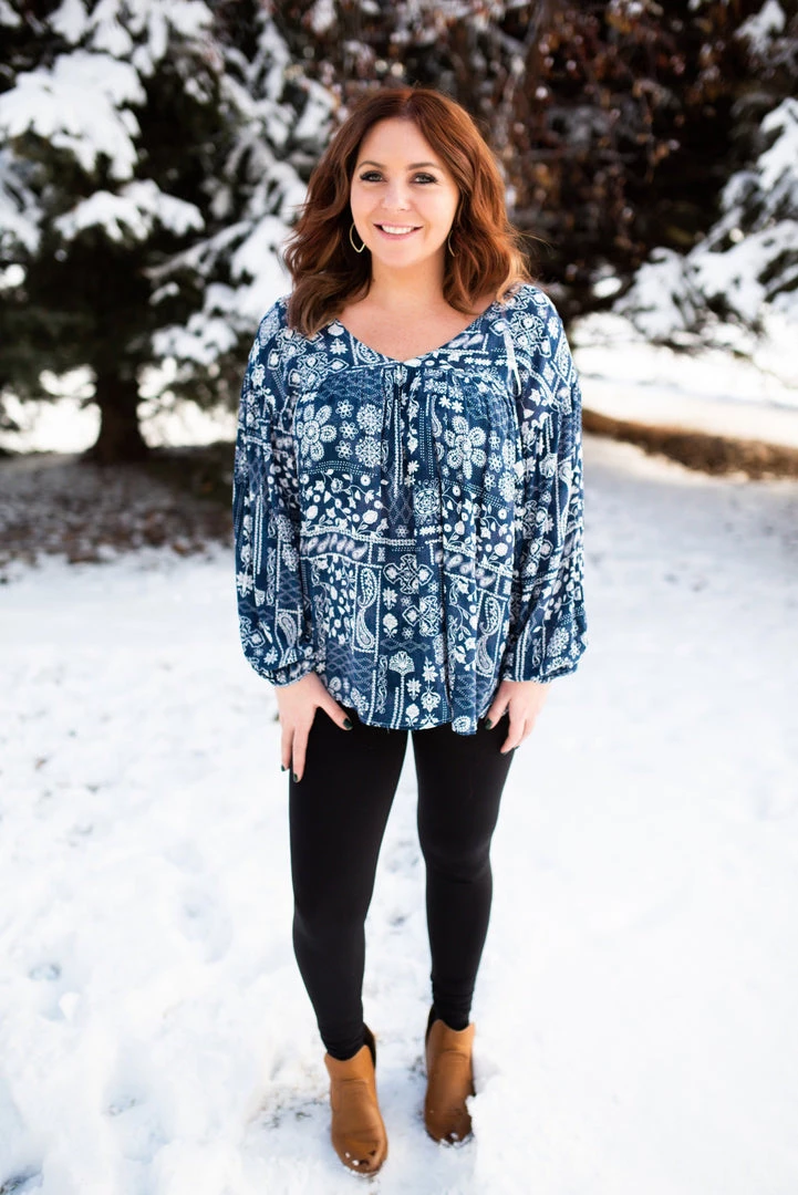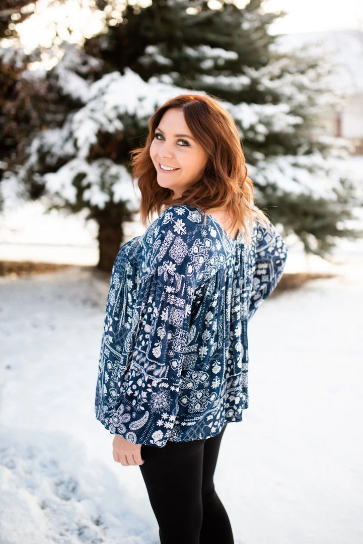 - Drop shoulder with a peasant sleeve and elastic at the wrist