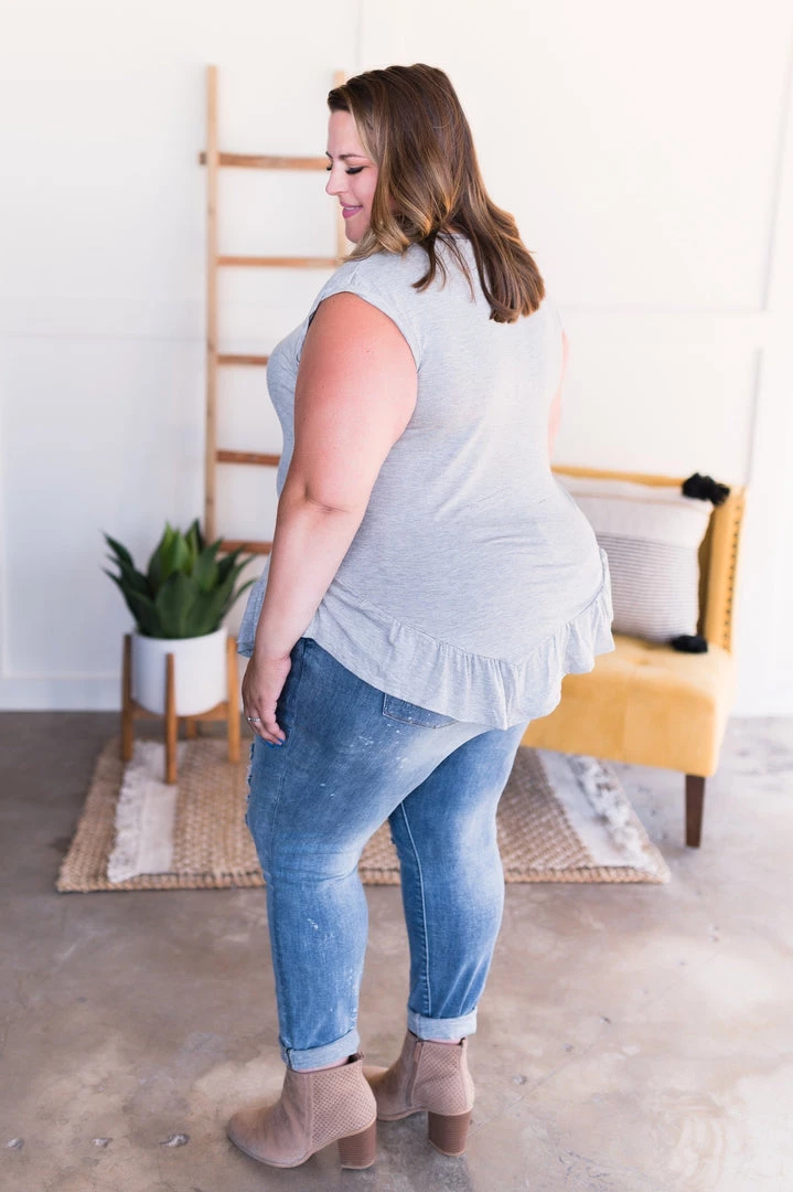 - Ruffle hem with longer side pointΒ
