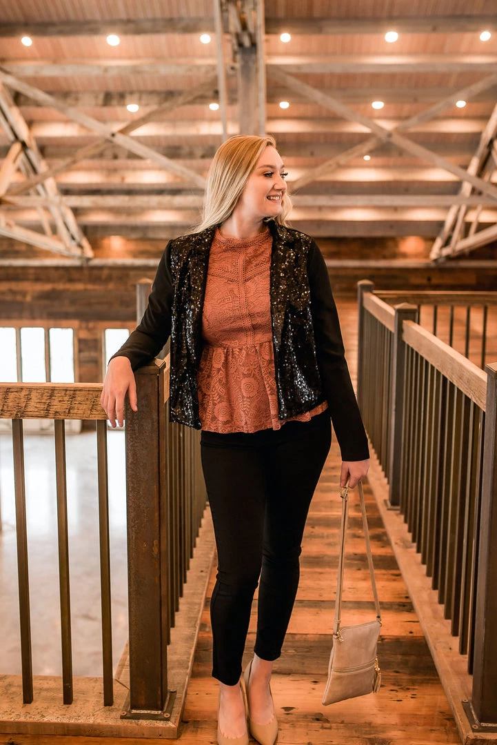 - Sequined front