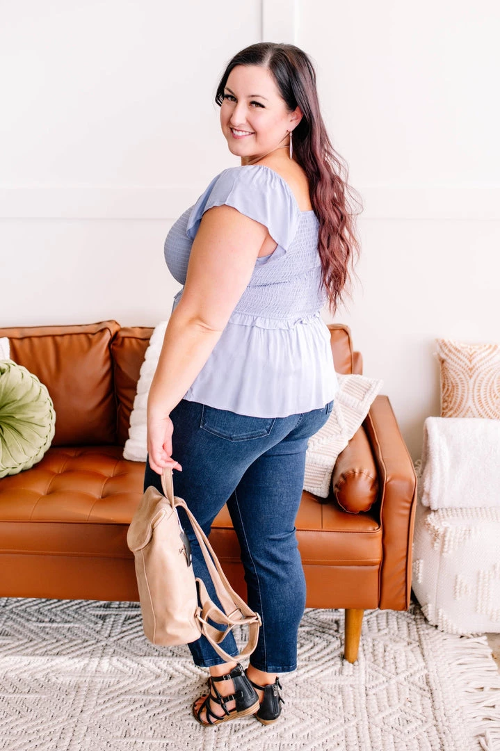 - Smocked throughout waist and back