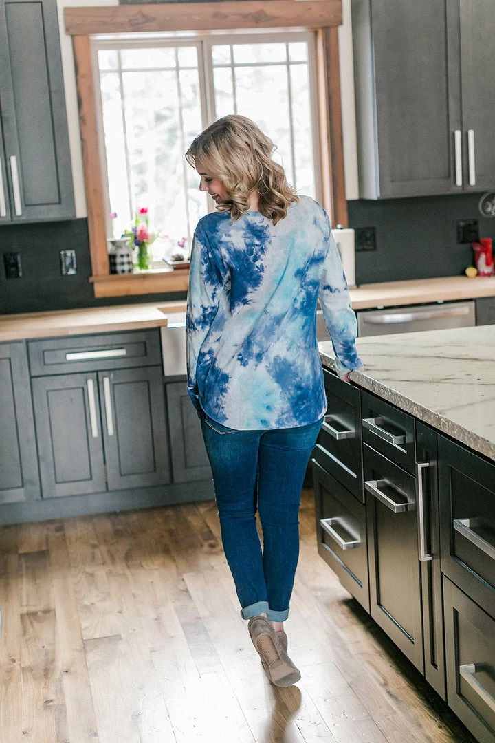 Soft, muted tie dye and a fun twist at the hem makes this top a unique little piece. It has just enough drama and just enough details to dress perfectly with your favorite denim jacket.Β