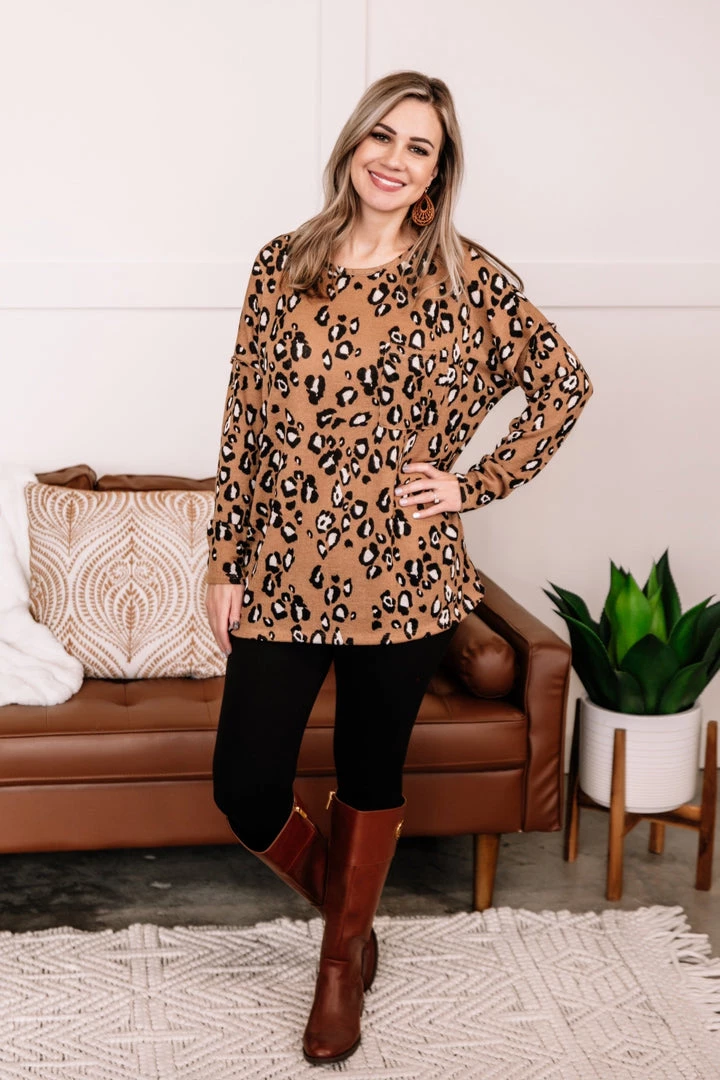 We can’t get enough leopard in our lives, and this fabulous little knit top is another winner! We loved it with leggings and skinny jeans; this print is fantastic to pair with anything black or dark washed.Β