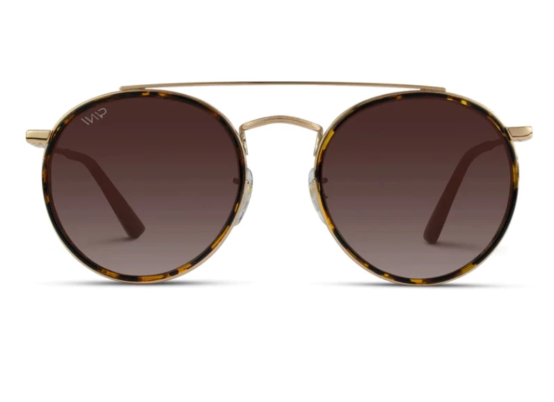 Wear Me Pro RET001-GLDBRW – Ariel – Double Bridge Round Polarized Retro Frame Sunglasses
